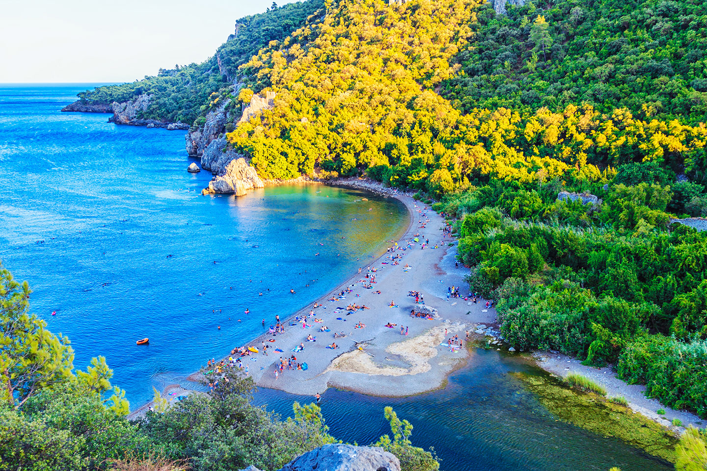Mediterranean coast from high angle in Olympos, Antalya, Turkey.